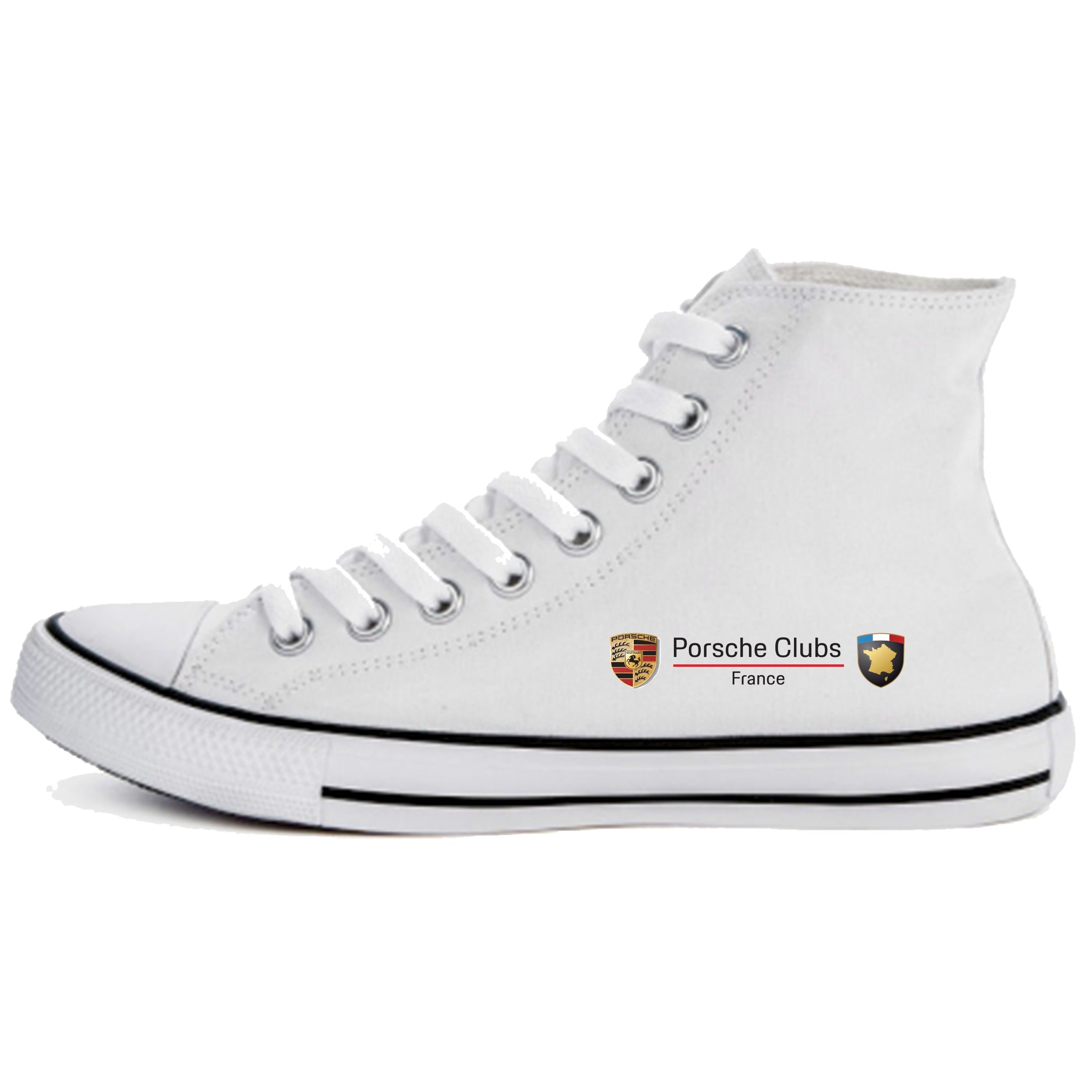 Chaussures hautes en toile-Semelle blanche avec une seule rayure noire-Livré avec des lacets blancs