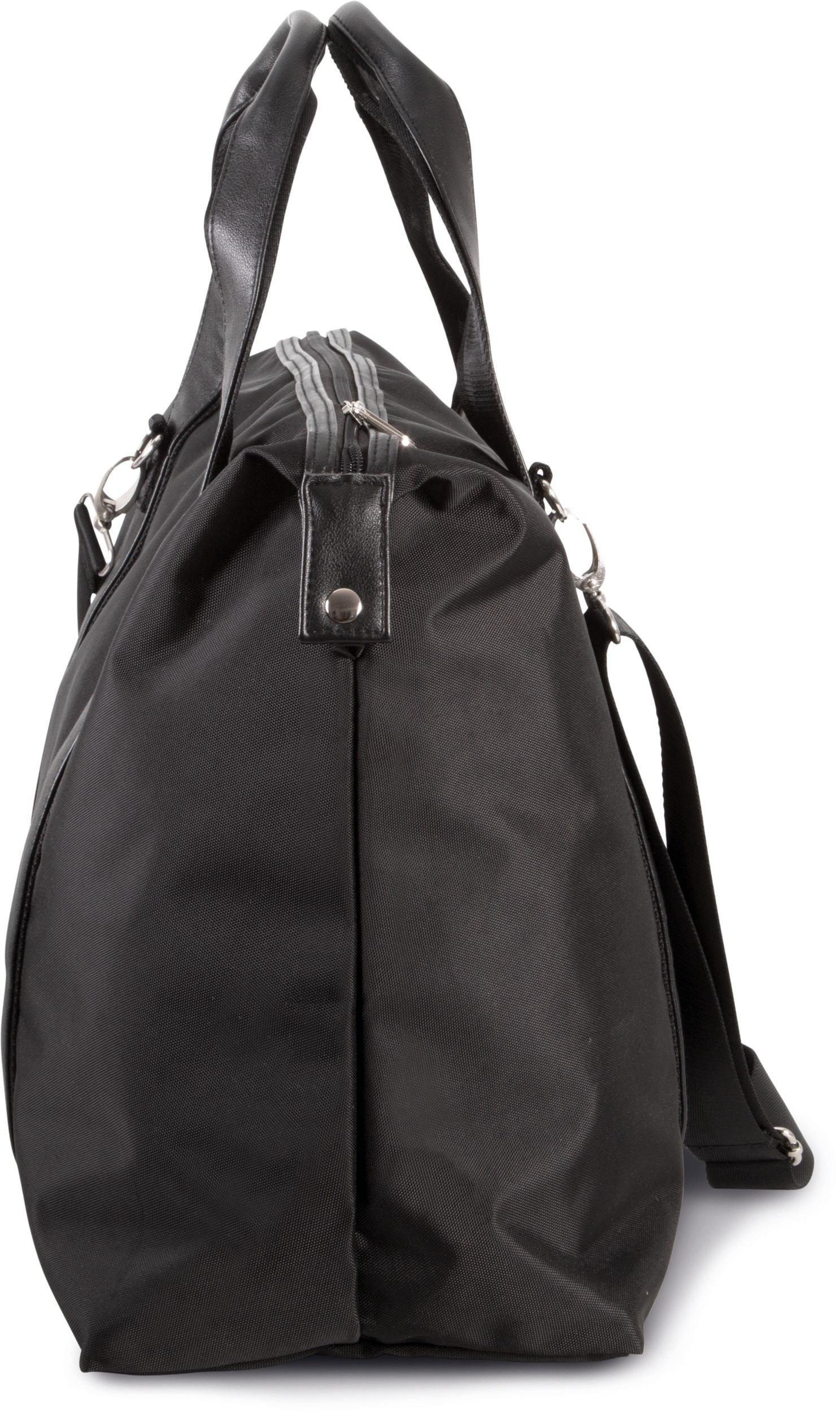 Sac fourre-tout de voyage en polyester 900D avec finition contrastée le long de la fermeture zippée. Doublure en polyester 210D. Poignées et bandoulière contrastées renforcées par sangle. Bandoulière amovible. Base avec pieds de stabilité